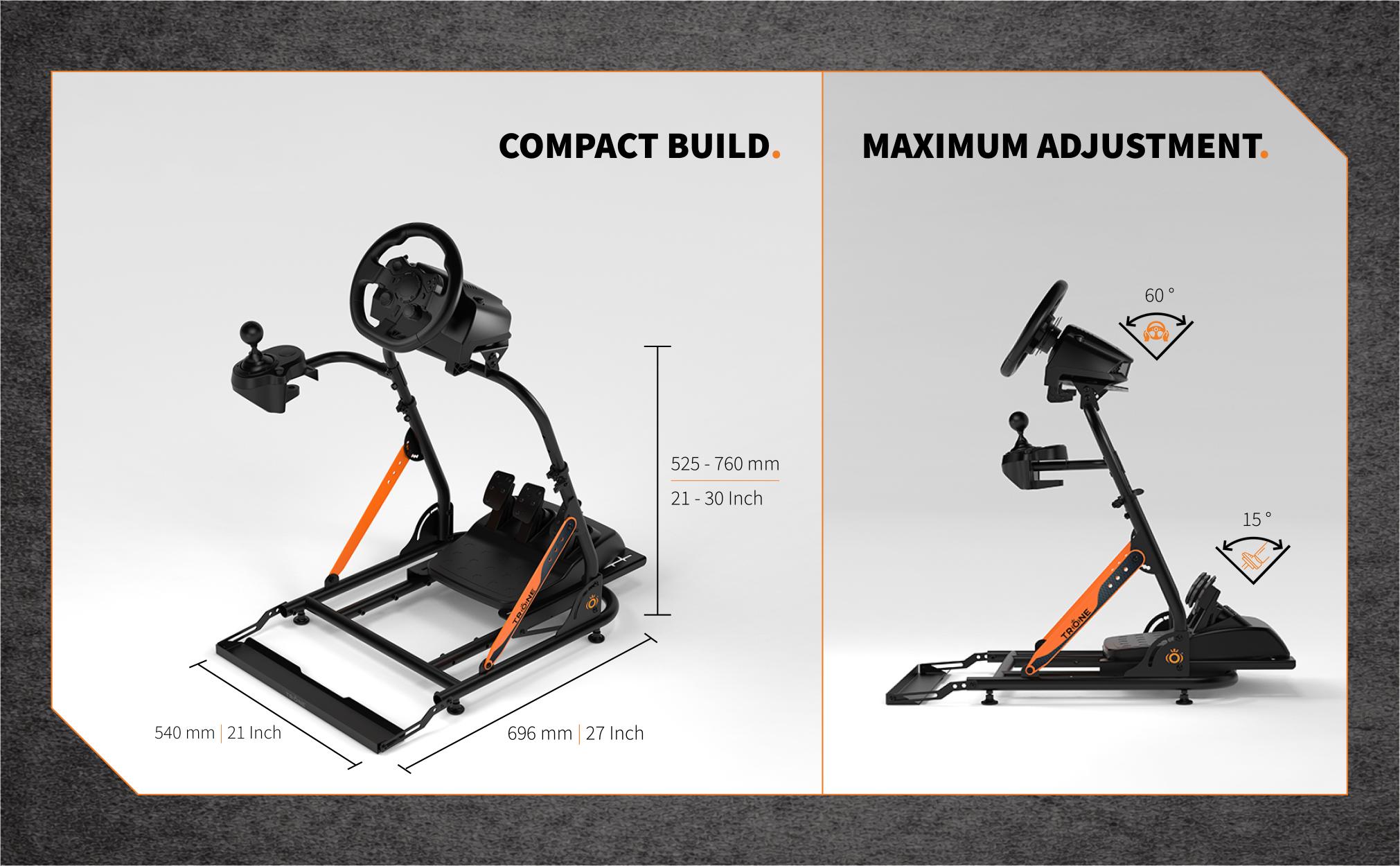 Designed for entry-level sim gamers and competitive racers alike. Stable enough for high-force setups, simple enough for first-time users.FULLY ADJUSTABLE WHEEL & PEDAL PLATES