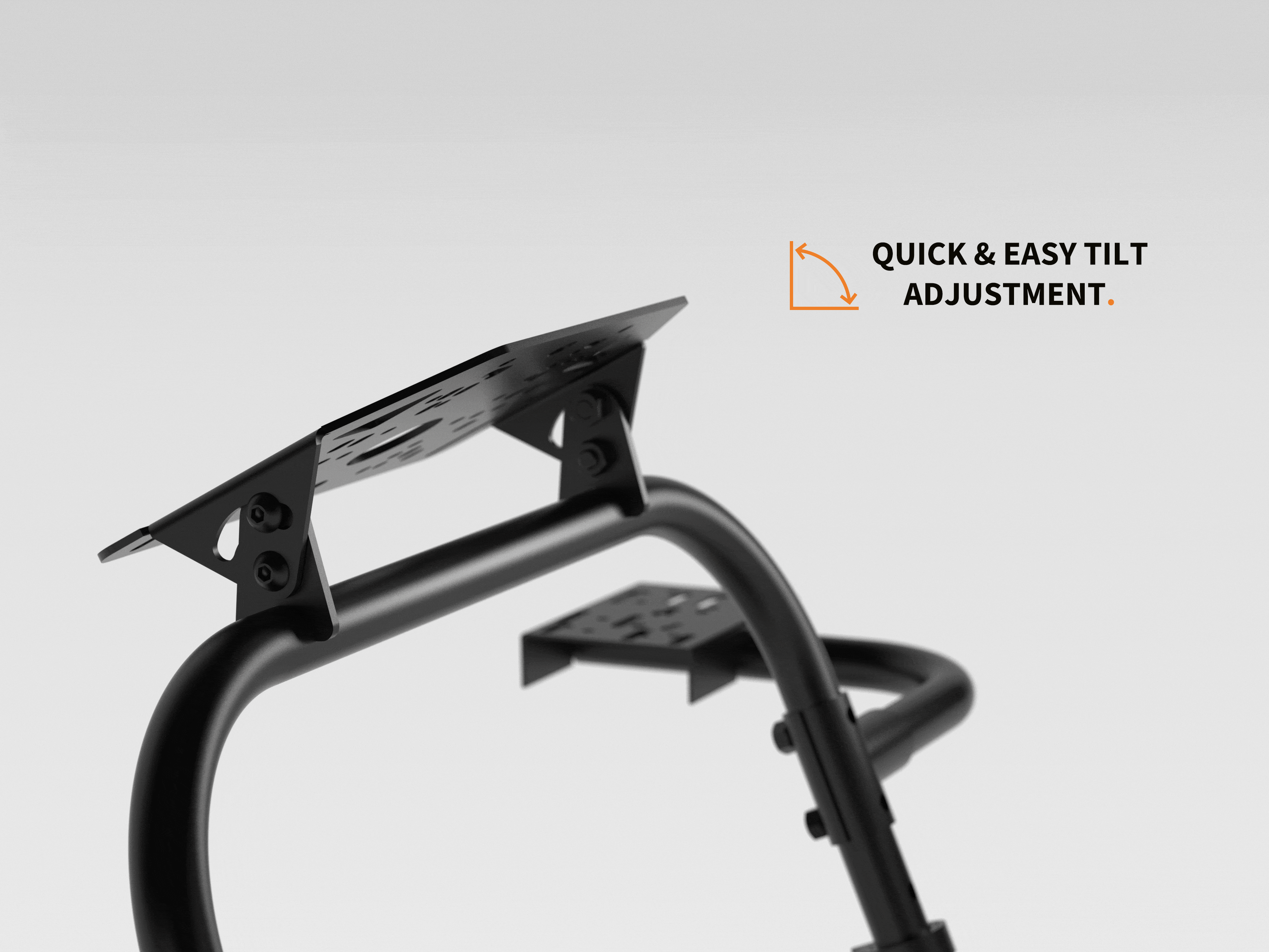 Integrated mounts compatible with gear shifters and handbrakes from major sim racing brands, ready out of the box.ANTI-FLEX HEAVY-DUTY STEEL CONSTRUCTION